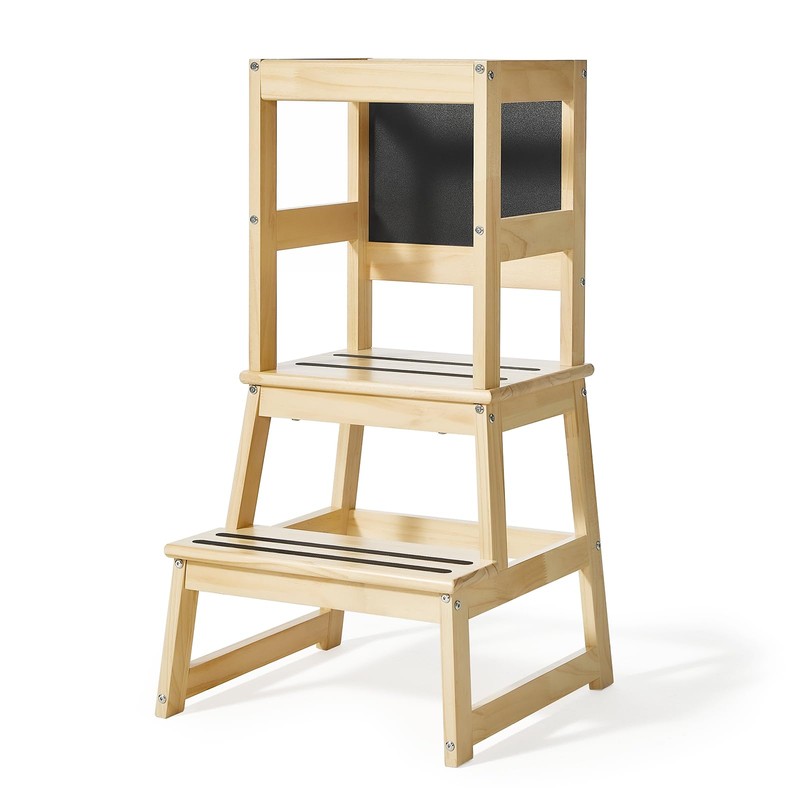 Yojoker Kids Kitchen Step Stool - Toddler Standing Tower, Toddler Kitchen Stool Helper, Montessori Kids Learning Stool with Safety Rail, Anti-Slip Mats and Chalkboard (Natural)