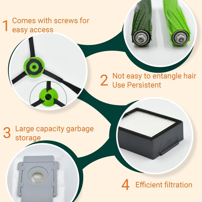 - Strong compatibility: This set of accessories is compatible with iRobot Roomba J7 J7+ J5 J5+ J6 J6+ J8 J8+ J9 J9+ i1 i1+ i2 i2+ i3 i3+ i4 i4+ i5 i5+ i6 i6+ i7 i7+ i8 i8+ E5 E6 E7 combo i5 and combo J5 (not applicable to combo J7 and combo J9). Please confirm the correct model before purchasing
