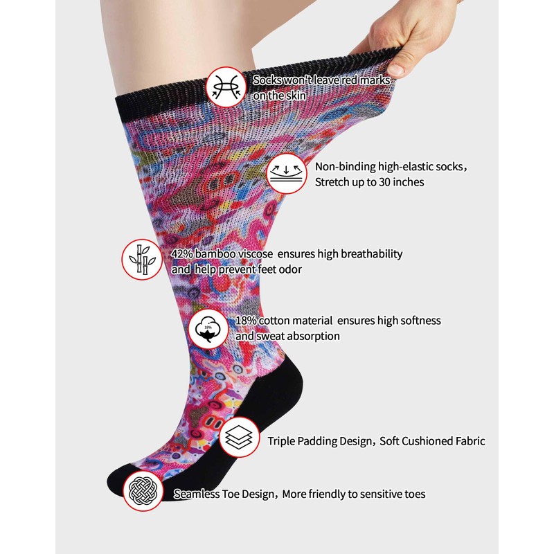 - Sin encuadernación, elástico hasta 30 pulgadas: la abertura suelta y elástica del calcetín puede aliviar la presión de las piernas para evitar afectar la circulación sanguínea y causar isquemia en los pies. Es muy adecuado para tobillos y pantorrillas hinchados, asegurando comodidad sin tensión