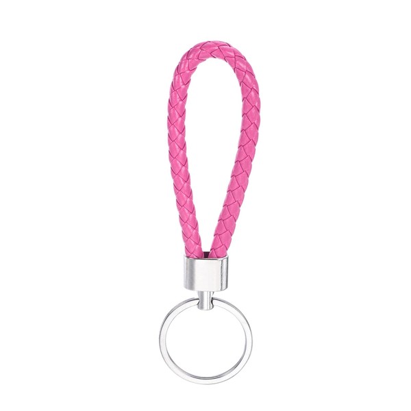YOKIVE 1 Pack Braided Leather Keychain, Woven Rope Weave Strap Key Chain with Keyring, Great for Car Key Bag Purse(Rose Red, 12-cm)