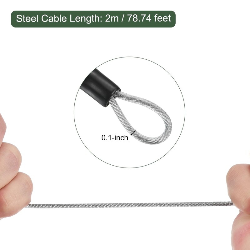 - WHAT YOU GET - The package comes with 1 set of padlocks that measure steel cable size: 2000 x 2.5mm/ 78.74 x 0.1 inch (L*Dia.); combination padlock height: 47mm/ 1.85 inch; shackle thickness: 4mm/ 0.16 inch.