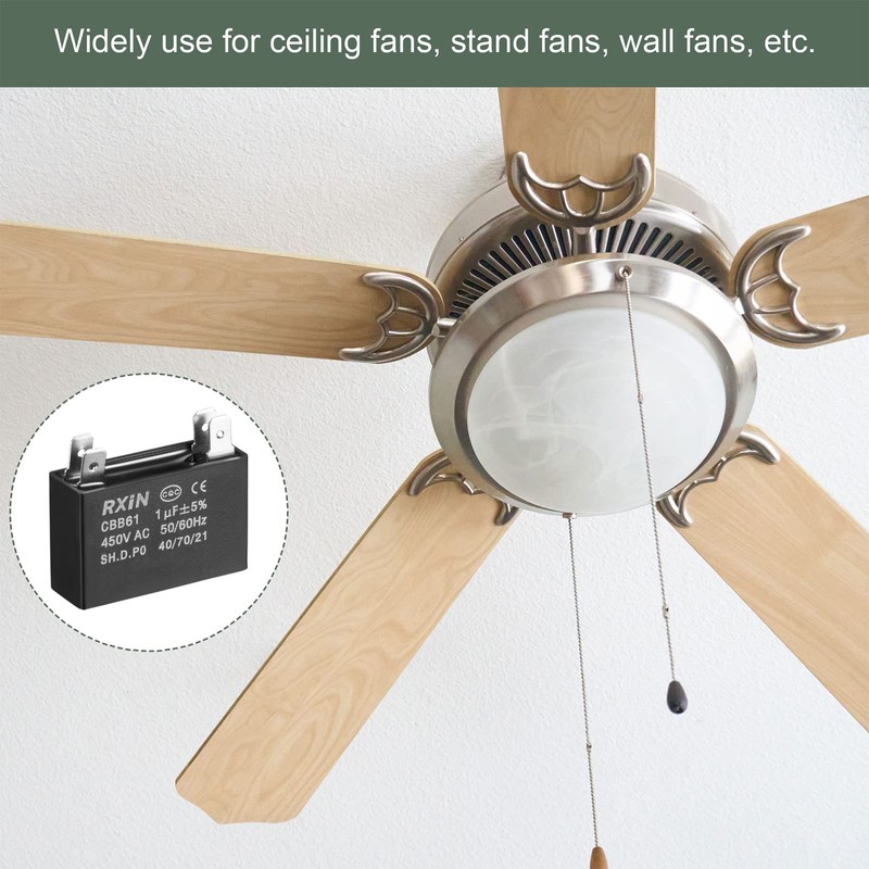 - √MULTIPURPOSE - CBB61 Run Capacitor, AC motor capacitors are good for washing machines, air conditioners, lamps and other single-phase motors with a frequency of 50HZ/60HZ AC power supply and relatively small power supply.