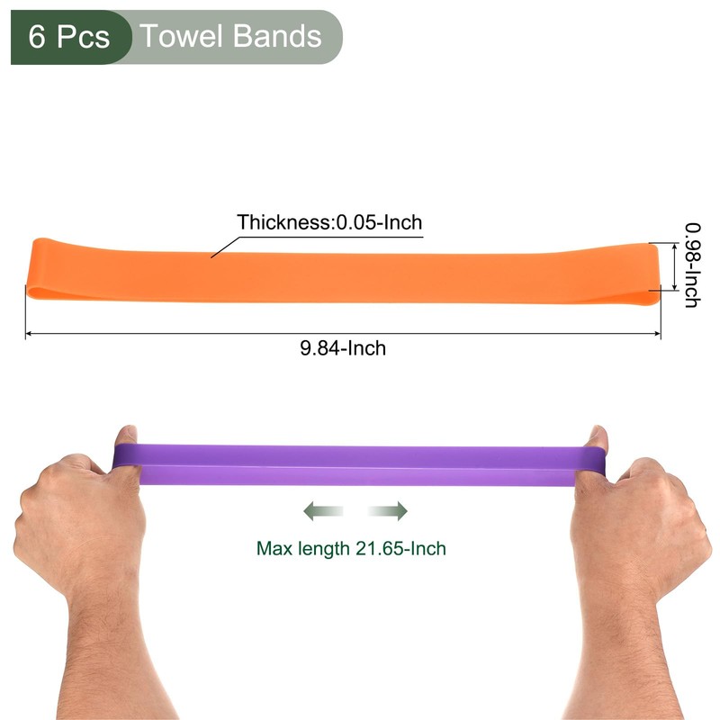 - √WHAT YOU GET - The package comes with 6 pcs of Orange Towel Bands. The total size of this product measures 25 cm / 9.84 inch in Length; 2.5 cm / 0.98 inch in Width. The thickness measures in 1.3 mm / 0.05 inch.