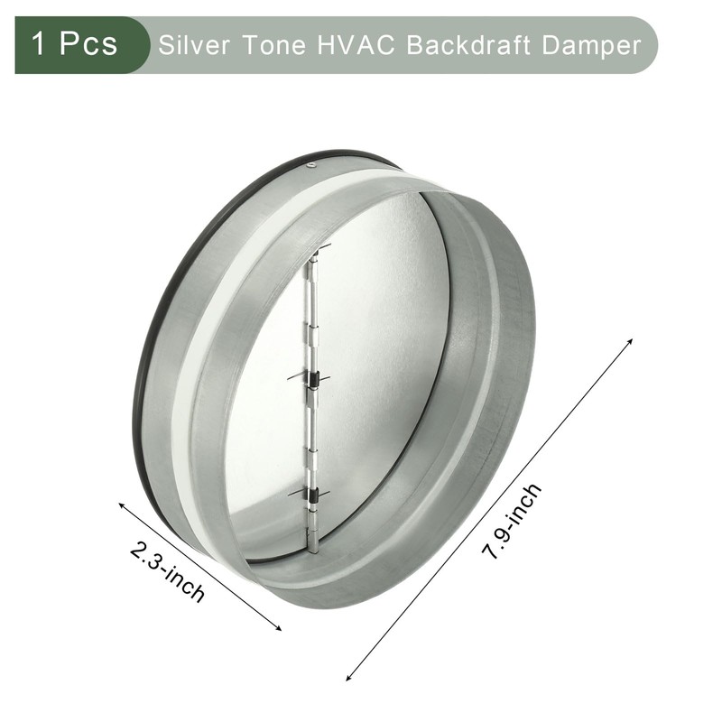 - WHAT YOU GET: The package comes with 1 Pcs Silver Tone HVAC Backdraft Damper with a 7.9-inch outer diameter of the interface and a 2.3-inch overall length.