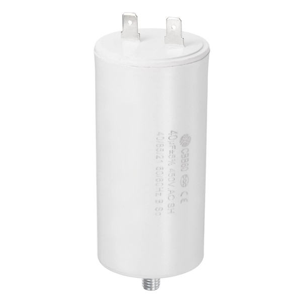 WHAT YOU GET - The package comes with 1 pcs CBB60 Run Capacitor that measure Thread: M8, Total Height: 117mm / 4.6 inch, Fixing Stud Length: 13mm / 0.5 inch, Body Size: 92x45mm / 3.6x1.8 inch (L*D), Lead End: Single Insert, Tolerance: ±5%, Rated Capacity: 40uF, Rated Voltage: 450V AC, Rated Frequency: 50/60Hz, Climatic Category: 40/85/21.
