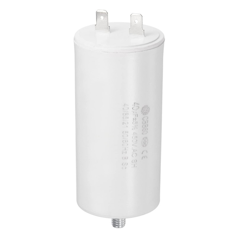 YOKIVE CBB60 Run Capacitor, 450V AC 40uF 50/60Hz with Fixing Stud Run Round Capacitor, Low Loss, Great for Washing Machines Motor (White, 92x45mm)