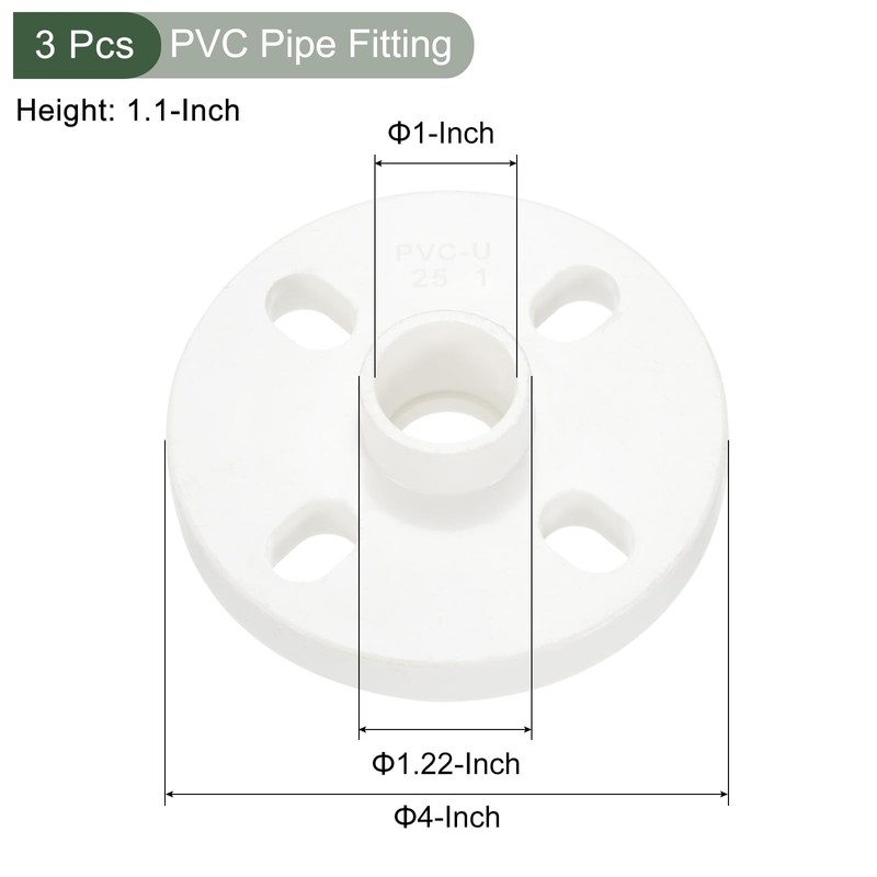 WHAT YOU GET - The package comes with 1 pcs PVC Pipe Fitting that Large Inner Diameter: 25mm/1 inch; Small Inner Diameter: 13x18mm/0.51 x 0.7 inch; Large Outer Diameter: 103mm/4 inch; Small Outer Diameter: 31mm/1.22 inch; Height: 28mm/1.1 inch.