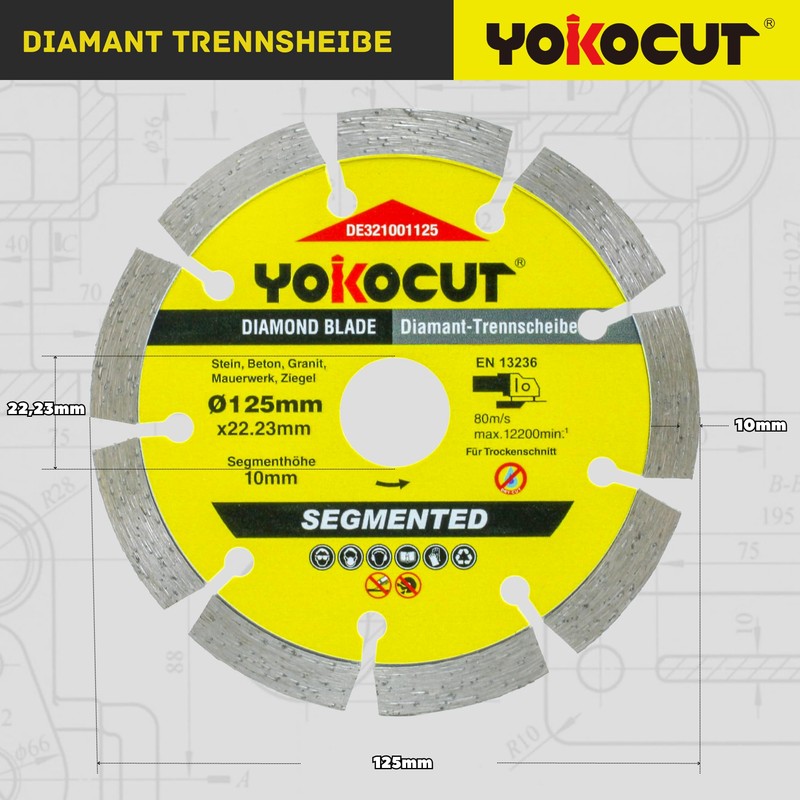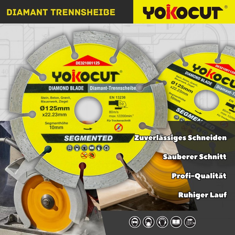 YOKOCUT Diamond Cutting Disc 125 mm Universal Cutting Disc for Stone, Concrete, Granite, Masonry, Brick Accessories, Angle Grinder