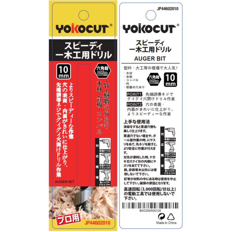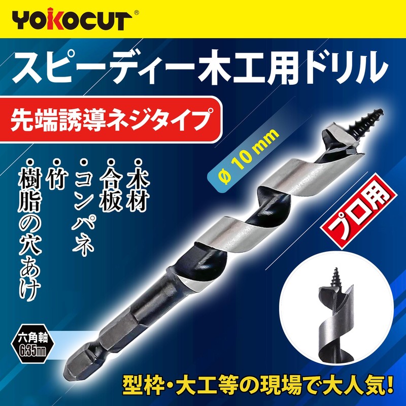 YOKOCUT Woodworking Drill Bit, 0.4 inch (10 mm), Hex Shank, Short Bit for Woodworking, Tip Induction Drill Point