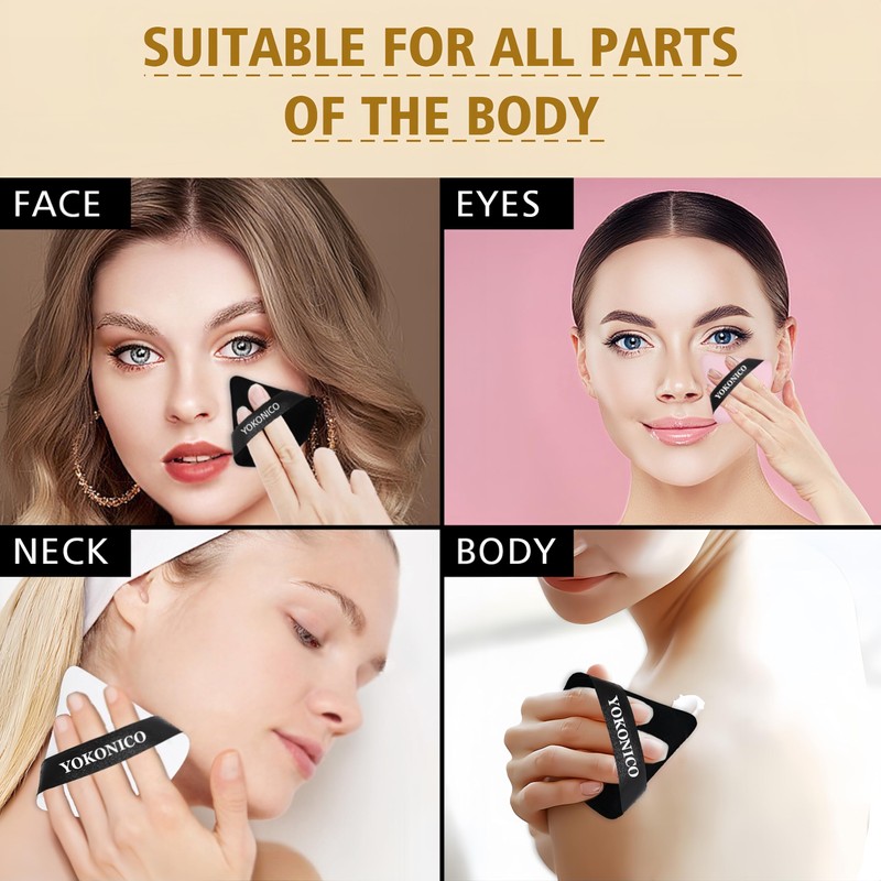 - POWDER PUFF HUMANIZED SHAPE: Powder puff for face is actually designed with triangle and circle style. When you put the foundation on your cheeks and forehead, you can use the round side. When you put foundation on the boundary or angle. You can choose the triangle side easy to apply on the nose or eyes, and you won't have to worry about the uneven makeup