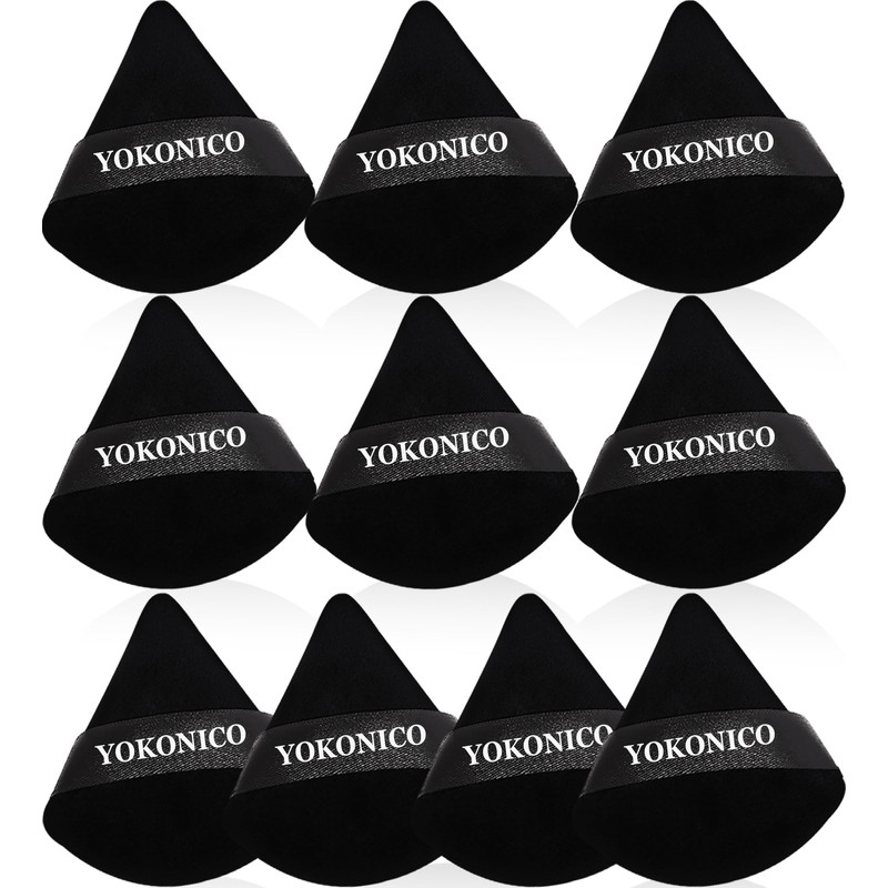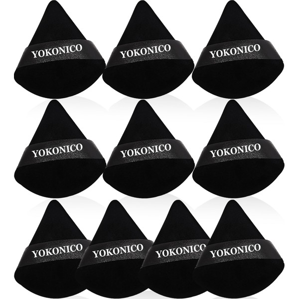 YOKONICO Triangle Powder Puff, 10 Pack Soft Velour Makeup Puffs for Loose Powder, Cotton Sponges for Face Cosmetic Foundation, Mineral Wet Dry Makeup Tool (Black)