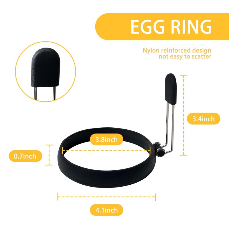 - High-Temperature Silicone for Culinary Prowess - Our 2-Pack All-Black Egg Rings are crafted from premium silicone, designed to withstand temperatures up to 230°C. Each ring measures 4 inches in diameter, perfect for creating standard-sized eggs, sandwiches, and pancakes. The compact packaging makes storage a breeze.