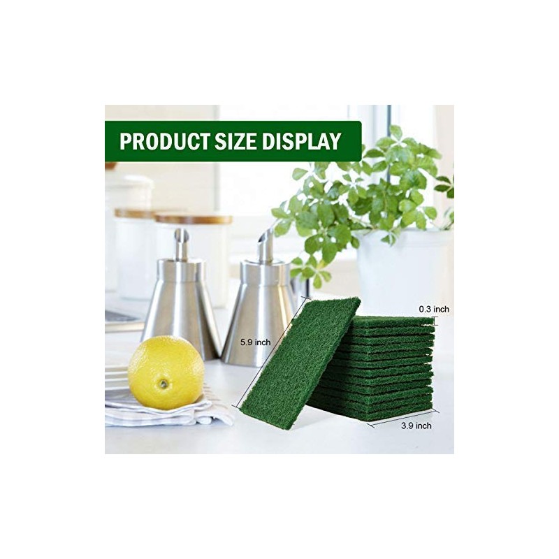 - ✪ Scrubbing texture: Our scouring pads are two to three times more durable than comparable medium-duty green scouring pads. Made from premium resilient synthetic fibers and never get rust or tear off as poorly made scouring pads in the market.