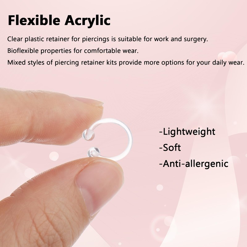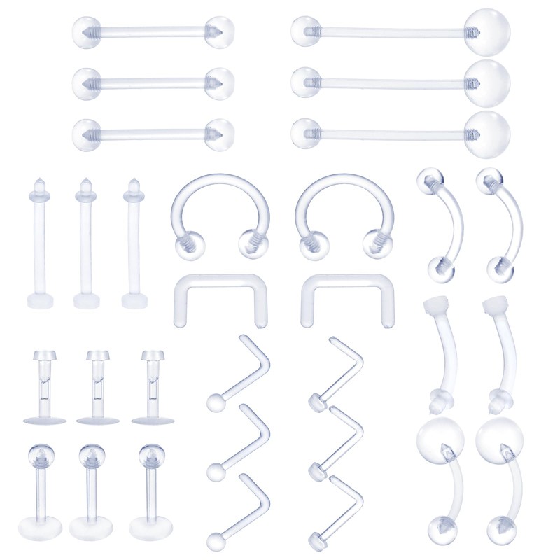 Yolev 31 Piece Plastic Nose Piercing Set Transparent Ear Piercings Holder Belly Button Ring Plastic Earring for Lip Eyebrow Transparent Nose Ring Labret Piercing Tragus, Acrylic, No