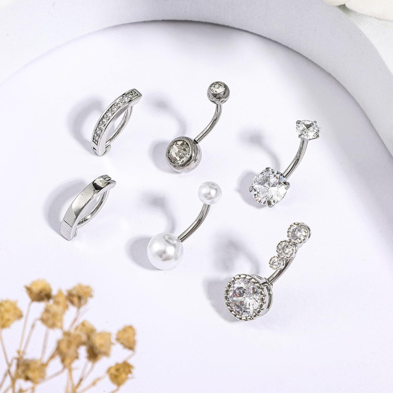 - 【Included Items】 A set of silver belly bar and belly ring. This set includes 2 belly button rings and 4 different styles of belly button nails, providing a variety of wearing options. The stainless steel belly bars suit is exquisitely made, and you can choose the right belly piercing according to your mood and outfit.