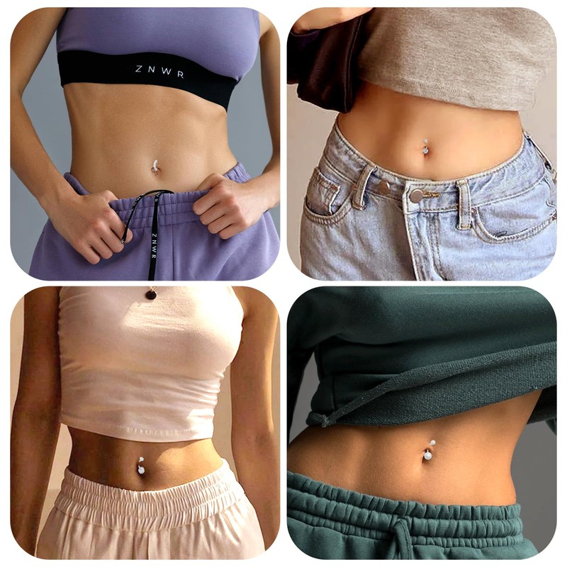 - 【Cute Design】belly button bars are a type of navel piercing jewelry, which includes 5 different styles, including spherical diamonds, spherical pearls, and ring-shaped belly piercing jewelry. Belly piercings of different shapes and styles help you create different dressing styles.