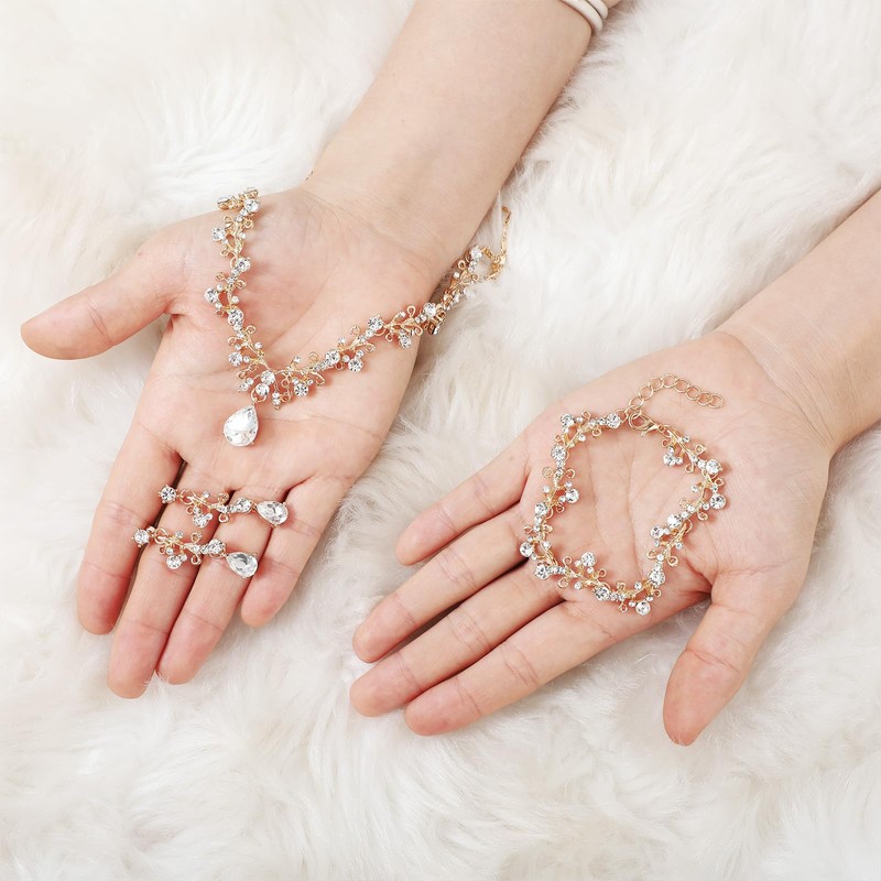 - Exquisite Design: The gold jewelry set for women features a beautiful flower branch design with delicate crystals, , creating a cohesive look that enhances your beauty and elegance, the golden tone adds a touch of luxury, this special design is born to match the clothes and your unique beauty.