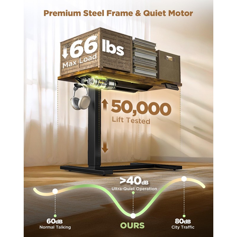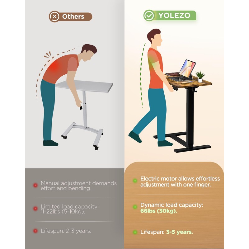 - 【Smooth Height Adjustment】YOLEZO electric standing desk features a premium hidden DC motor with less than 40 dB noise, smoothly adjusting from 28" to 46.9". With 3 memory presets and easy up/down buttons, it gives you the perfect height for your bedroom, couch, or small workspace anytime.