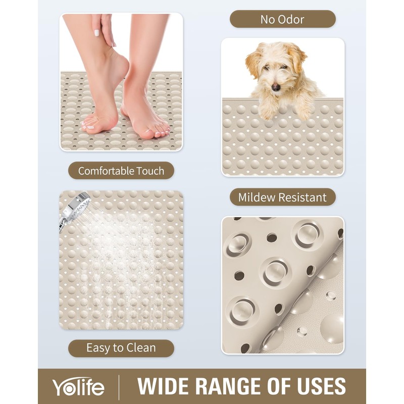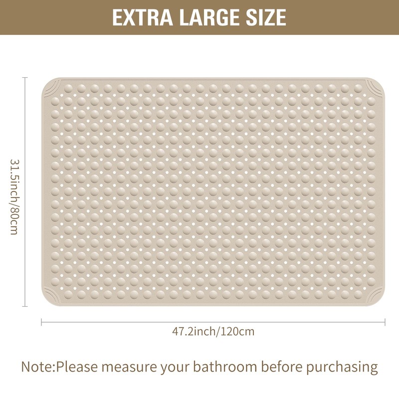 Yolife Extra Large TPE Shower Mat, 47.2" L x 31.5" W Anti Slip Bath Mat with Drain Holes and Suction Cups, Large Size Mat More Suitable for Shower Stall, No Odor, Heavy Mat