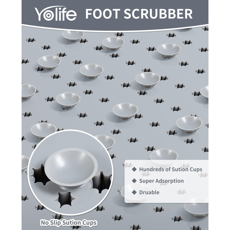 Yolife Shower Foot Scrubber Mat, Anti-Slip Bath Mat with Scrub Bristles, Soft Shower Foot Massager with Strong Suction Cups for Soothe Achy Feet, 25.6" x 13.4"