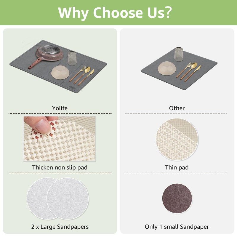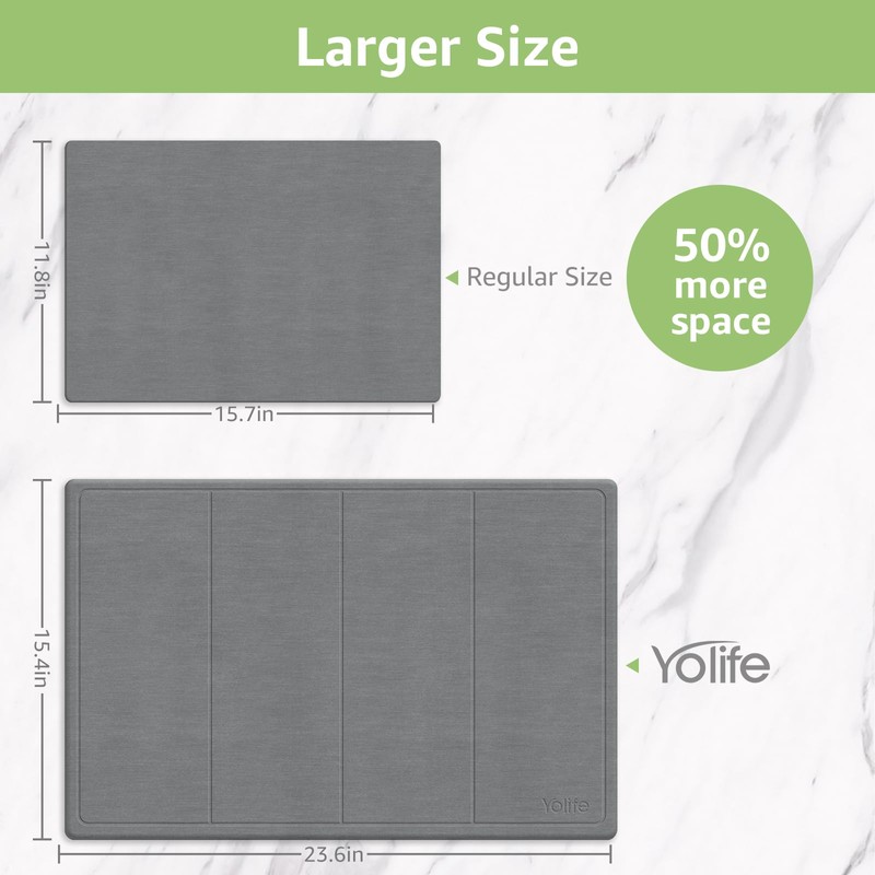 - EXTRA LARGE SIZE: Measuring in at 23.7" L x 15.4" W (60 x 39 cm), Yolife dish drying stone mat is 50% larger than other regular-sized stone drying mat on the market, offering ample space for more hand-washed dishes, oversized bowls and large pans to dry off