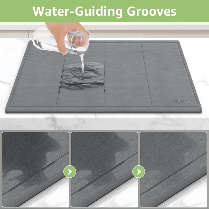 - CONVENIENT & EASY CARE: Stone dish drying mats for kitchen counter looks nicer than a dish towel and way less clunky than a counter dish rack. And it don’t need to be constantly washed like microfiber cloths or silicone mat. Just a quick rinse or wipe. Kitchen stone drying mat saves time and effort and provides long term value, making it thoughtful gifts for mother, wife and friends