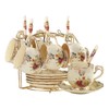 YOLIFE YOLIFE Flowering Shrubs Tea Cups and Saucers Set of 6, Ivory Ceramic Floral Tea Cups Set with Golden Rack, Coffee Cups, 8 oz