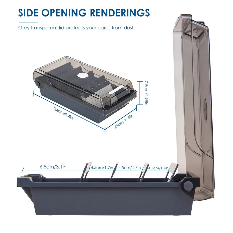 • Grey transparent lid protects your cards from dust.