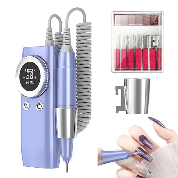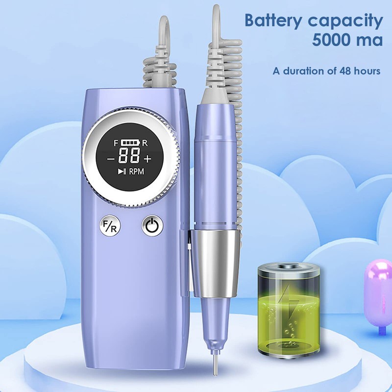 - [Taladro de uñas recargable] - Con batería de litio de 5000mAh incorporada, la lima de uñas eléctrica puede durar de 8 a 12 horas después de estar completamente cargada, después de la carga, también puede utilizarlo como un banco de energía cuando su teléfono necesita energía. La pantalla clara hace que sea mucho más fácil saber que la cantidad de una carga que le queda. El diseño inalámbrico del taladro de uñas significa que no tienes que hacerte las uñas cerca de una toma de corriente.
