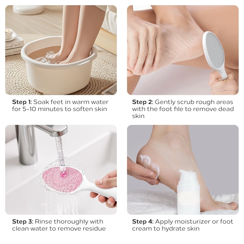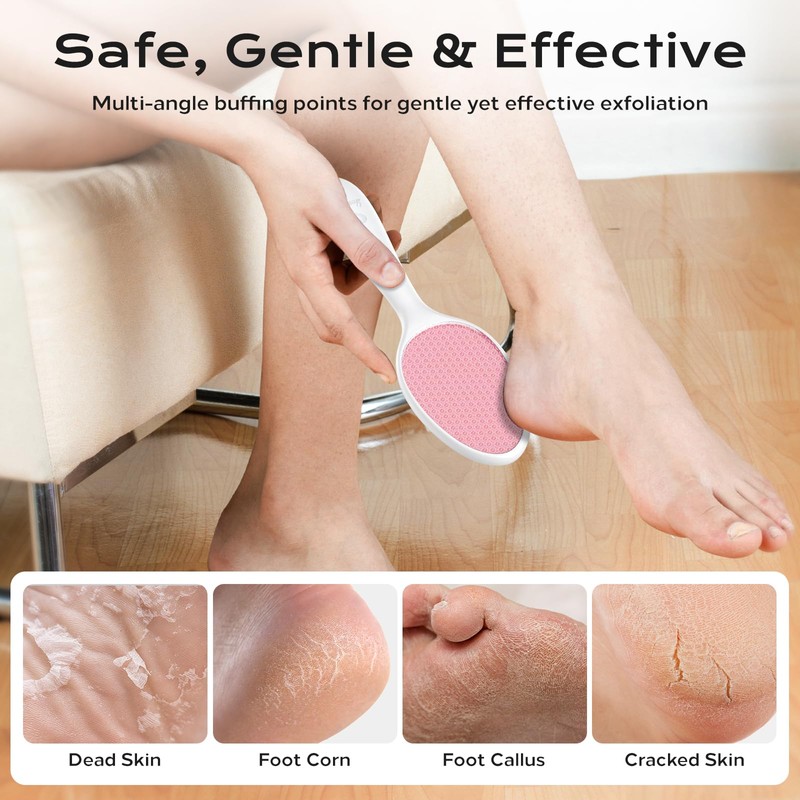 - Dual-Action Design (2-in-1): Crafted with advanced nano-glass etching technology, this dual-sided foot file combines precision and durability. The reinforced glass structure resists deformation for long-lasting use. Coarse Side: targets stubborn calluses and dead skin with controlled abrasiveness. Smooth Side: Features circular micro-textures for gentle dead skin removal and leg hair reduction.