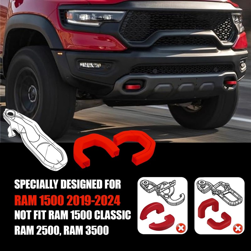 - [Compatibility Note]: Fits RAM 1500 (2019–2024). Does not fit: 2009–2025 RAM 1500 Classic/Warlock (U-hook), RAM 1500 Classic, RAM 2500, or RAM 3500 (J-hook).Verify your hitch shape before ordering this essential RAM truck accessory