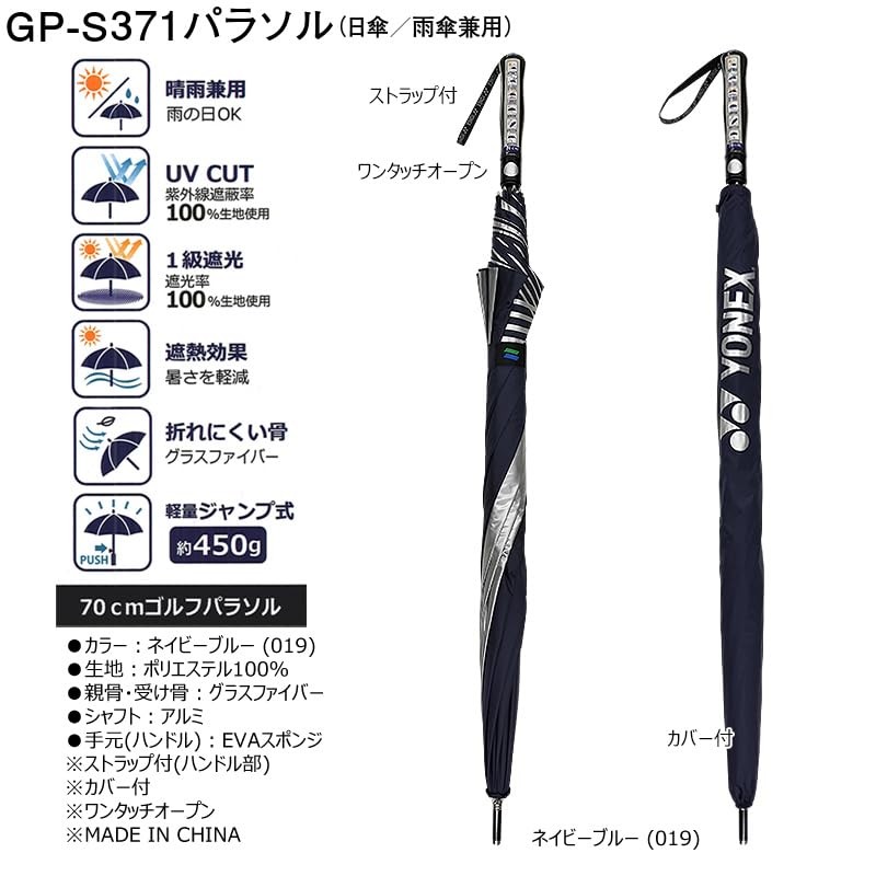 Yonex GP-S371 Parasol/Rain Umbrella, Parasol (27.6 inches (70 cm), Navy Blue, 99% UV Reduction, Grade 1 Light Blocking, One-Touch Open, blue (navy blue)