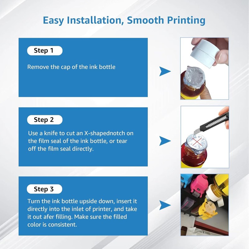 - Compatible Smart Tank Plus 555 ink refill features: easy to refill, quick-drying formula, high-speed printing satisfaction, water-based formula, high colour saturation, no smudging, high colour fidelity and no toxicity, no chemical hazards, no clogging.