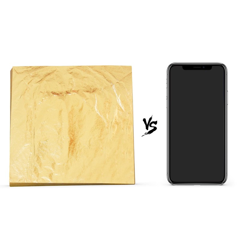 - √200 pieces 14cm x 14cm gold foil, made from 86% copper and 14% zinc, These imitation gold foils are loose leafed, with each sheet sandwiched between tissue-like paper sheets. To use, gently lift a tissue paper and grasp the sheet underneath it. The imitation gold material, whose main component is copper, is perfect for restoring furniture into beautiful new-looking gold treasures at home. It can also be used to make your crafts more resplendent.non-edible,can't be used for cake baking
