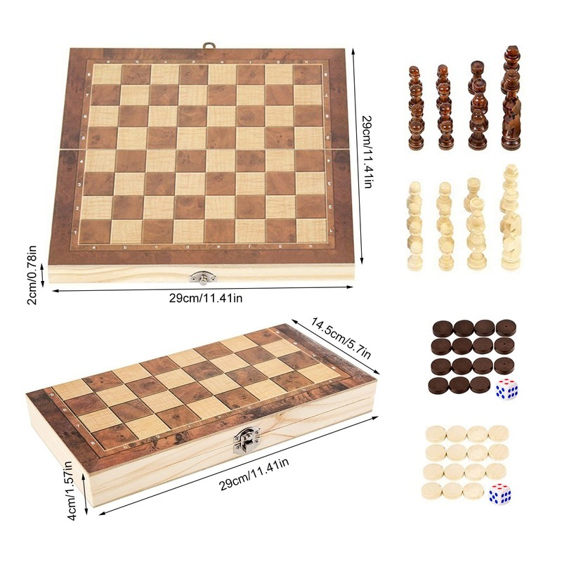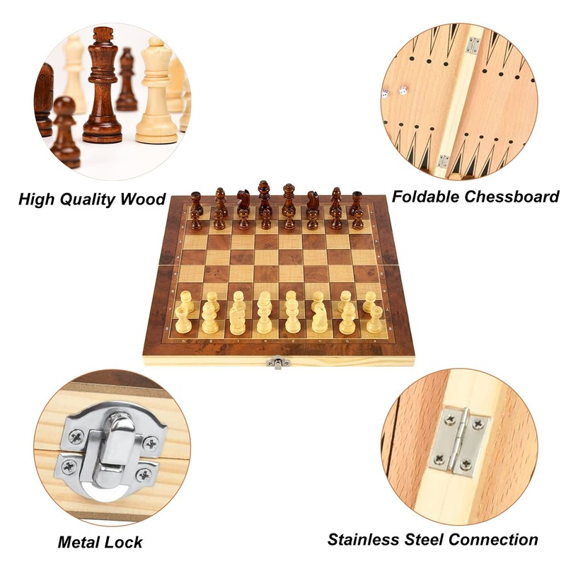 • 3-in-1 chess game: this 3-in-1 chess game includes chess games, backgammon games and draughts. It is ideal for spending time with children.