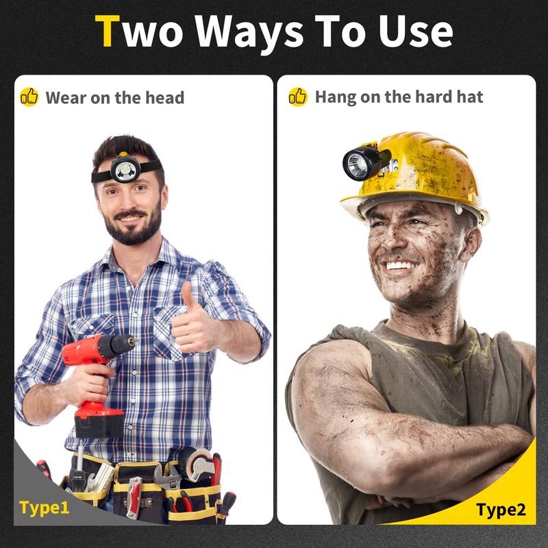 - ➤ Two Use Options: This lamp can wear on the head with a head band, it also can hang on hard hat. Lightweight and easy to use.