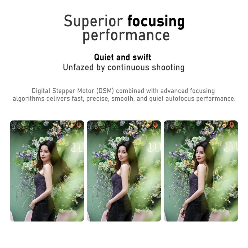 - AF and MF SYSTEM: Equipped with DSM (Digital Stepping Motor) technology for quick, accurate, and near-silent autofocus operation. Through the AF/MF focus mode switch, you can quickly complete the focus mode switch,improve the efficiency of creation