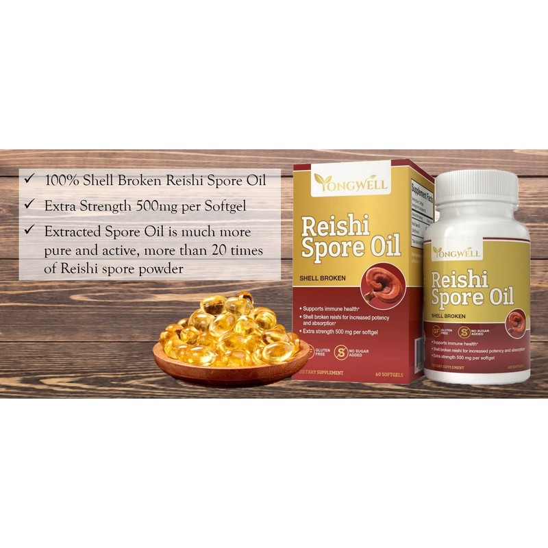 YongWell Reishi Spore Oil Shell Broken Extra Strength 500mg (60 Softgels)