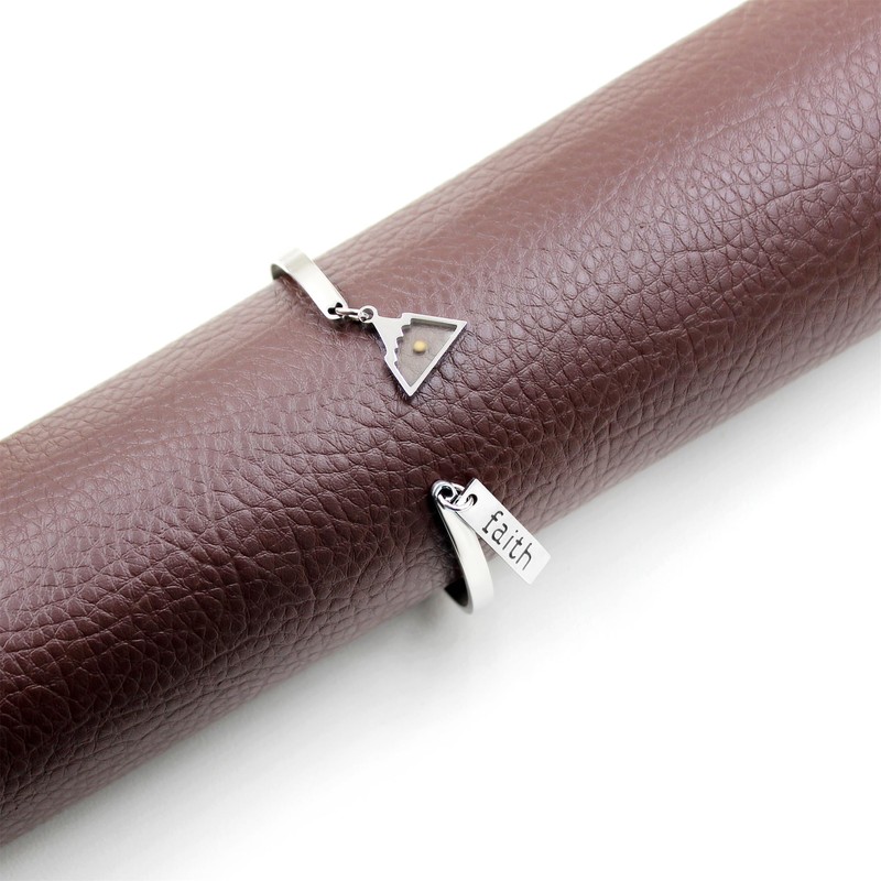 - Inspirational Design: This elegant bracelet features an engraved quote from Matthew 17:20, "Faith Can Move Mountains," complemented by your choice of three unique pendants, including classic Round Mountain, Heart Mountain, and Triangle Mountain, allowing you to select the one that resonates most with your spiritual journey