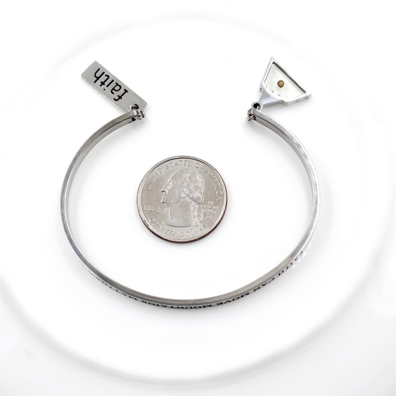 Yongxu Inspirational Faith Bracelet for Women with Engraved Matthew 17:20 'Faith Can Move Mountains' Quote | Adjustable Cuff Bracelets with Triangle Charm and Mustard Seed for Christian