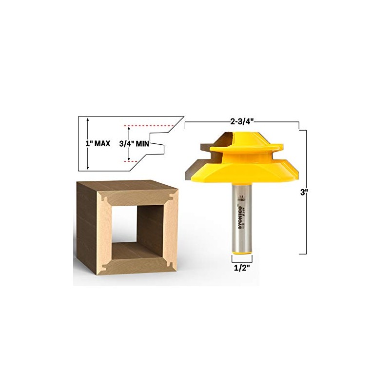 YONICO Router Bits Lock Miter 45 Degree - Up to 1-Inch Stock 1/2-Inch Shank 15122