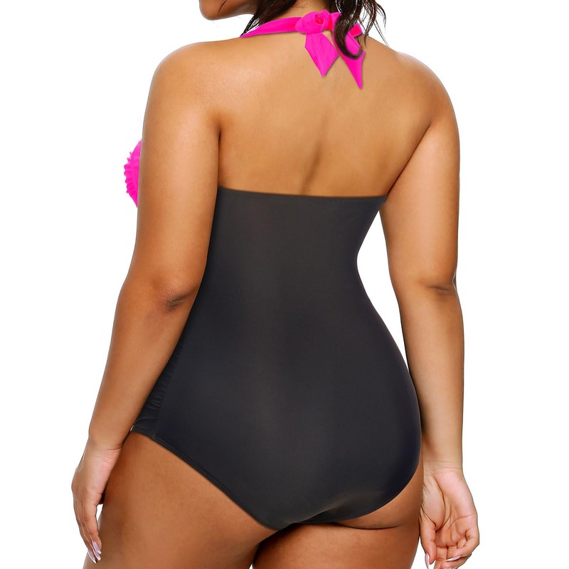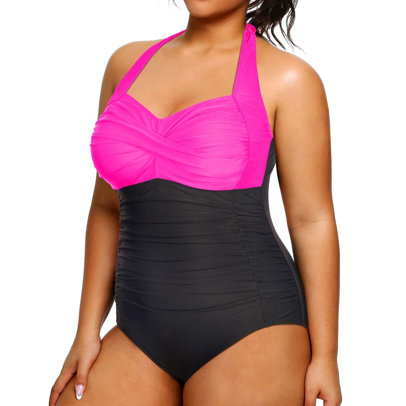 Yonique Plus Size Bathing Suit for Women One Piece Swimsuit Tummy Control Halter Tops Swimwear Hot Pink and Black 16 Plus