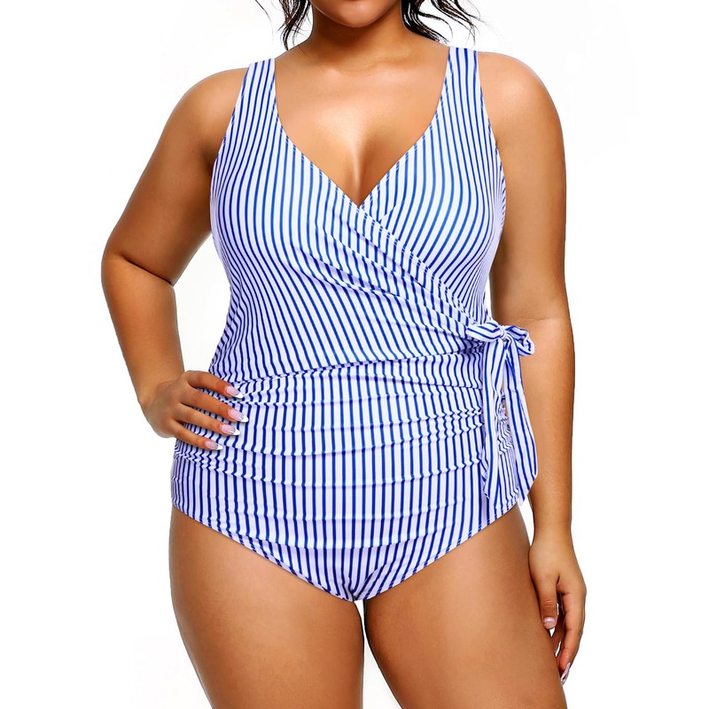 - The Plus Size Blue Stripe Swimsuit is the perfect holiday gift for ladies, moms, wives, and girlfriends. It's ideal for tropical vacations, summer, beach outings, pool parties, honeymoons, and cruises.