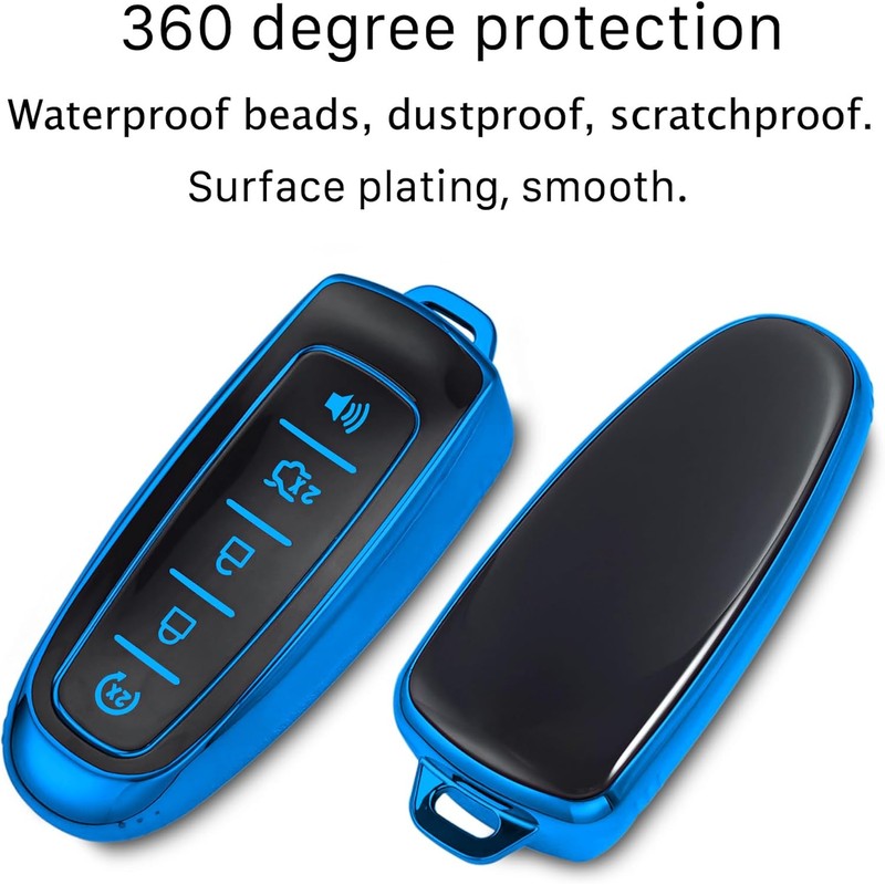 Yonmcfn for ford key fob cover with metal/leather keychain,TPU 5 Buttons Key case,compatible with C-Max Edge Escape Expedition Explorer Flex Focus Taurus Remote smart Key,keychain blue