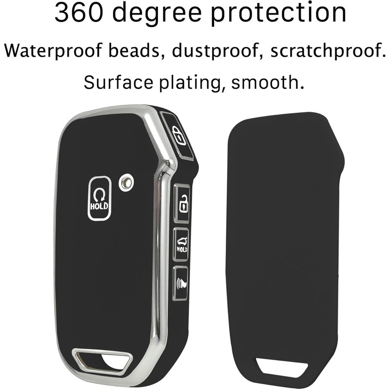 Yonmcfn for kia Key fob Cover with Metal/Leather Keychain,TPU 5 Buttons Key case,Compatible with NIRO Sorento Seltos Soul Telluride Cerato Ceed Forte Remote Smart Key,car Key Accessories,Black