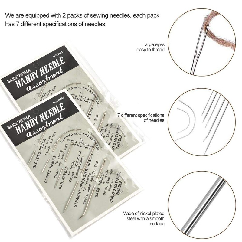 - Contains various sizes of heavy duty straight and curved needles to meet your different needs.