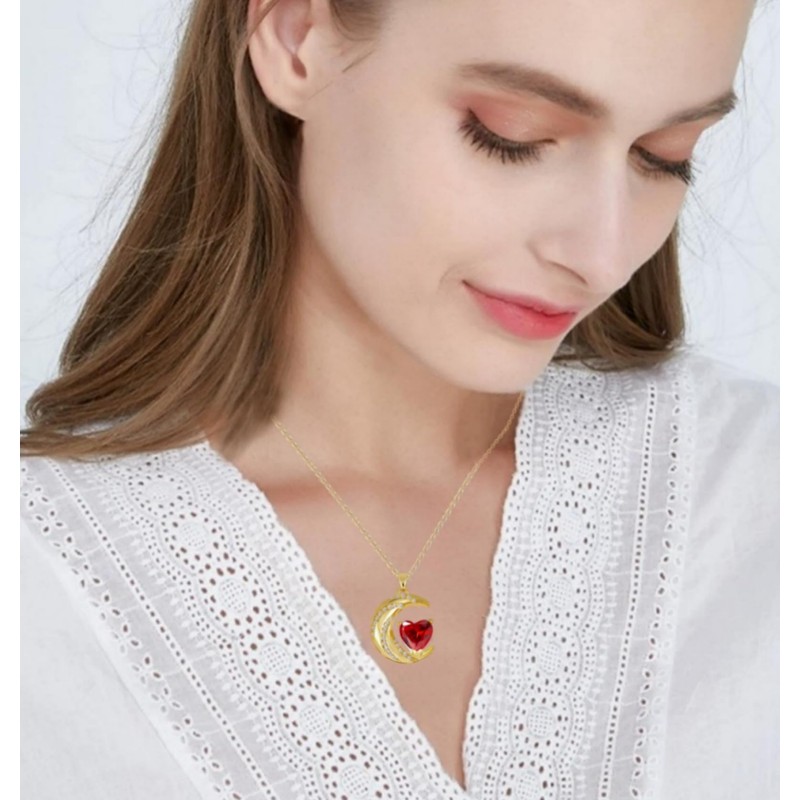 - đăStylish DesignăThis charming crescent moon necklace features a polished 18k gold plated moon shape, set a heart gemstone adds romantic appeal to the design, representing the message " l love you to the moon and back". Simple yet elegant design is ideal for Dressy Business, Holidays, Weddings, Proms and Everyday Wear.