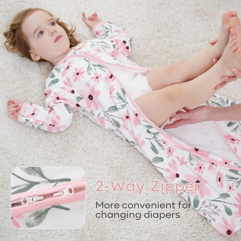 - 2-Way Zipper: Double zipper allows for easy dressing and convenient diaper changing with no hussle and bustle. Top-grade zippers and zipper flat design, sleeping sack for baby frees from any potential scratches, glide along the tracks moothly without any snagging or jamming, providing a sound experience for both parents and babys.