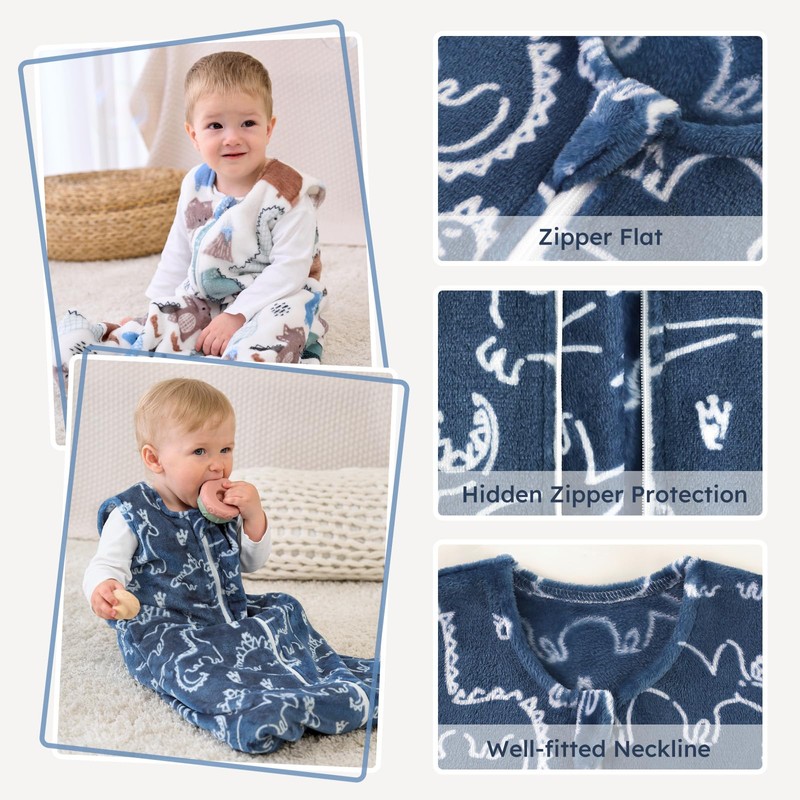 Yoofoss baby sleep sacks made of fleece,soft and smooth, create warmth and cozy embrace for baby. Fleece sleep sack 1.5 Tog is suiable for moderate temperatures from 69 to 73°F as an ideal option for autumn, early winter and spring or taking a nap in air-conditioned rooms during the summer.