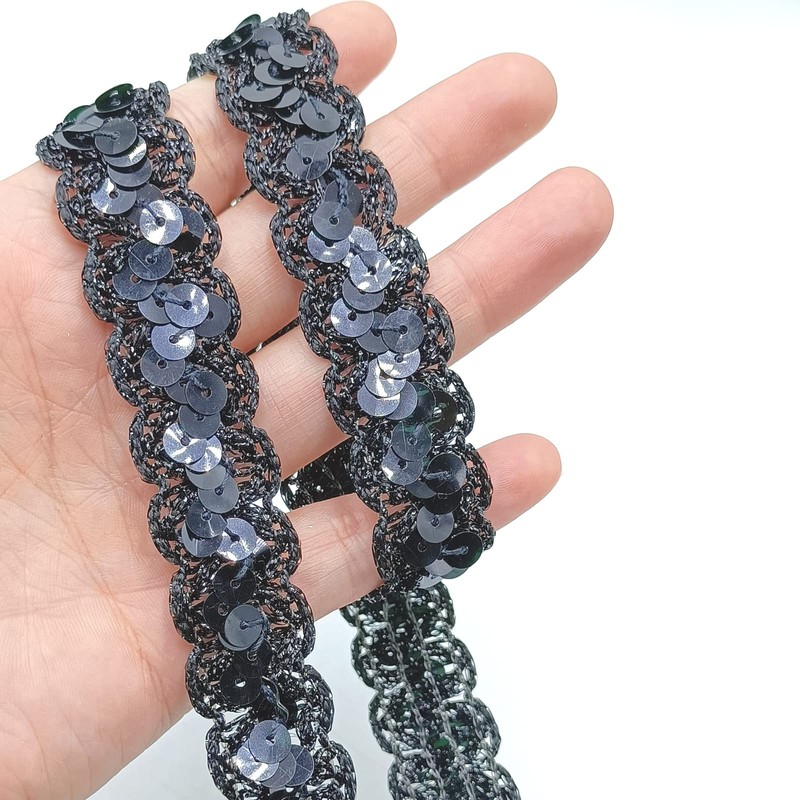 - Package Included:7 Yards Black Sequin Ribbon Lace Trim.(Inelastic).
